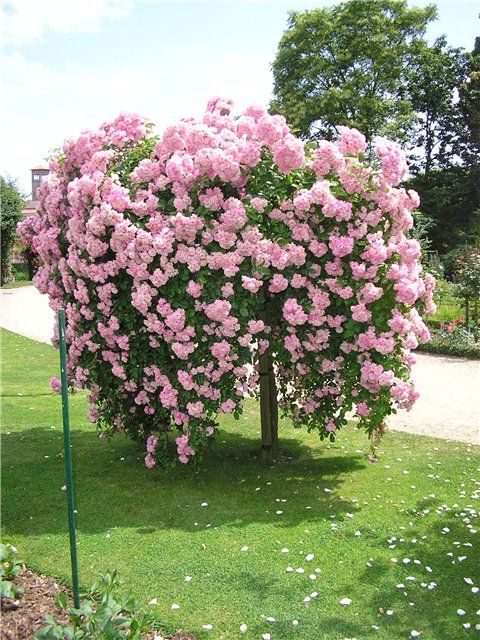 Уход за штамбовой розой включает регулярный полив, особенно в засушливые периоды, подкормку удобрениями весной и летом, а также обрезку отцветших цветков для стимулирования нового цветения. Важно также проводить профилактическую обработку от вредителей и болезней, чтобы сохранить здоровье растения.