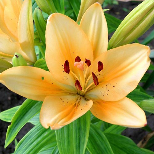 - Выбор места: Лилии предпочитают солнечные участки, но могут расти и в полутени. Важно, чтобы место было защищено от сильных ветров.