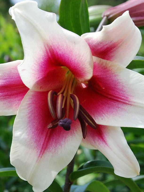 Лилия Garden Pleasure ОТ-гибрид (Садовое удовольствие) - это многолетнее травянистое растение с луковицами, которое отличается крупными цветками широкочашевидной формы. Этот сорт был выведен путем скрещивания Восточных и Трубчатых гибридов, что придает ему уникальные характеристики. Одним из главных преимуществ этой лилии является ее сильный аромат. Растение достигает высоты до 150 см, а его цветки имеют белый окрас с ярко-розовым центром. Длинные тычинки покрыты красно-коричневой пыльцой, что придает цветку дополнительную декоративность.